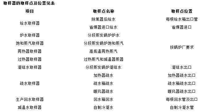 Ⅳ、鍋爐給水取樣冷卻器的取樣點及位置見表: