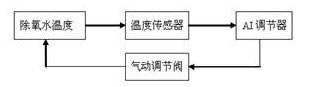 旋膜除氧器溫度:用PT100測(cè)量水的溫度,通過(guò)溫度變化調(diào)節(jié)氣動(dòng)薄膜調(diào)節(jié)閥的開度,改變蒸汽量的大小,使溫度保持在104度,調(diào)節(jié)器的型號(hào)為AI-808AX3L2L2。