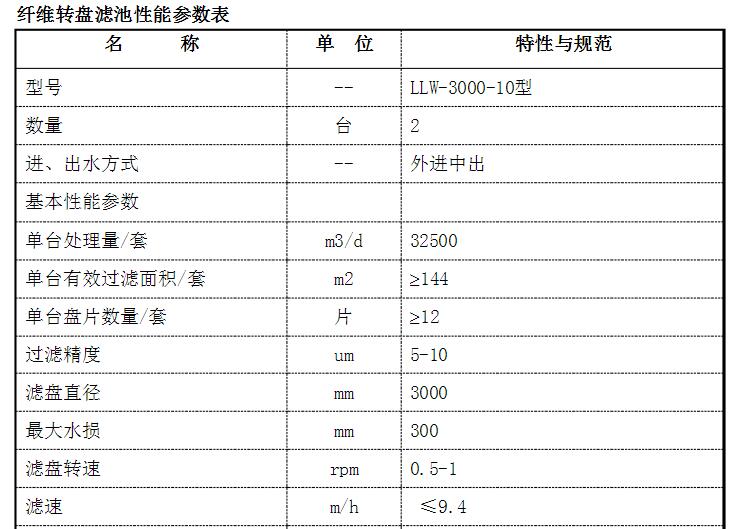 纖維轉(zhuǎn)盤濾布濾池過濾器裝置一般技術(shù)要求: