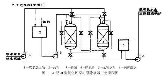 1.樹(shù)脂除氧器 2.加藥泵3.加藥箱4.脫氧水箱5.脫氧水泵.6.回水箱7.熱水泵